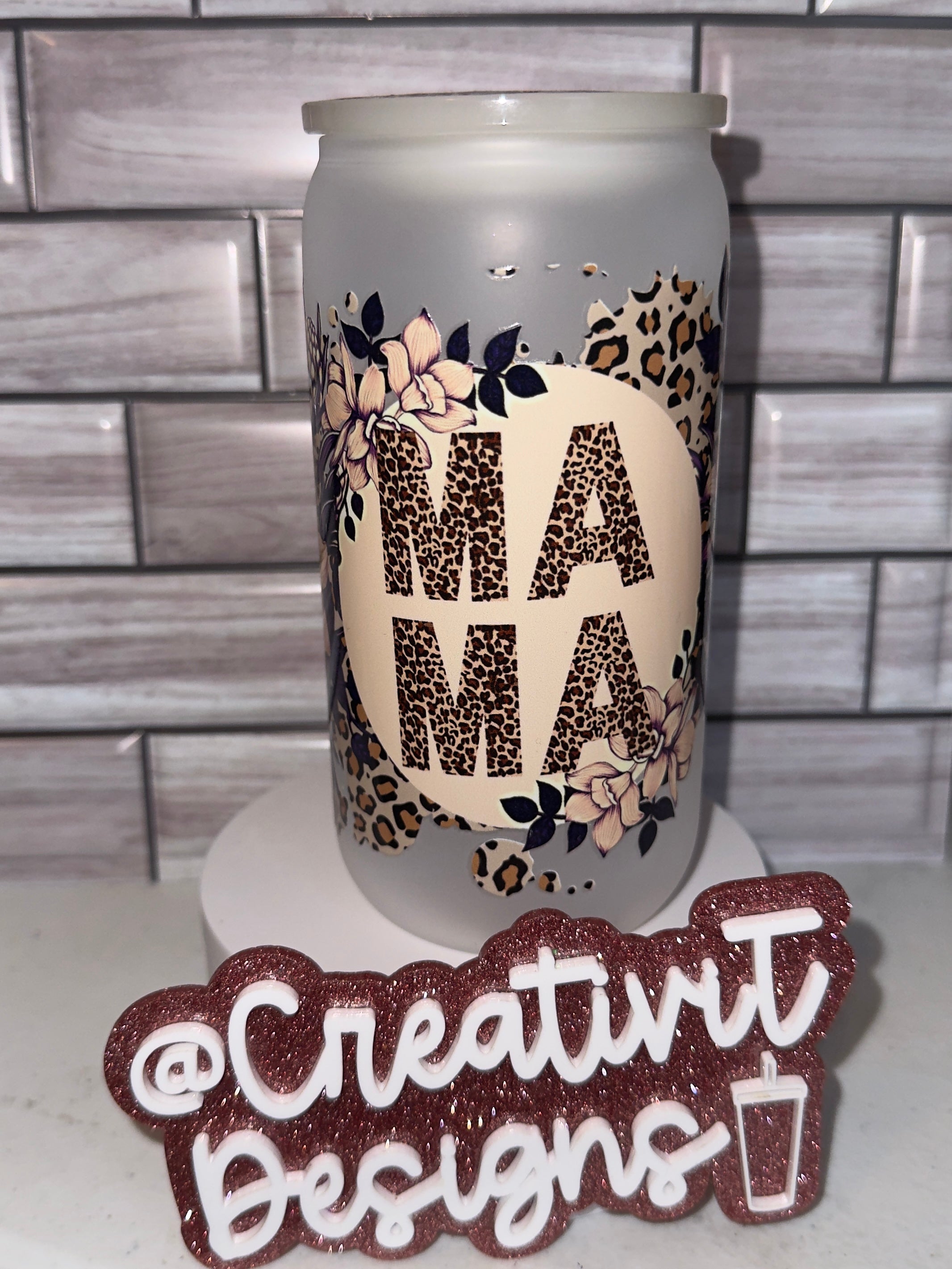 Unleash your inner wild with our Leopard “MAMA” Frosted Glass Can! Designed for the bold and beautiful mama, this 16 oz frosted glass can features a fierce leopard print “MAMA” surrounded by elegant florals and a touch of animal print sass. The perfect combo of edgy and chic, this tumbler brings personality to your favorite drinks—iced coffee, tea, or sparkling water.
